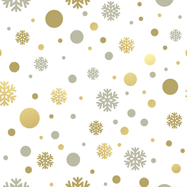 Festive season! Christmas white backdrop with gold, silver snowflakes.